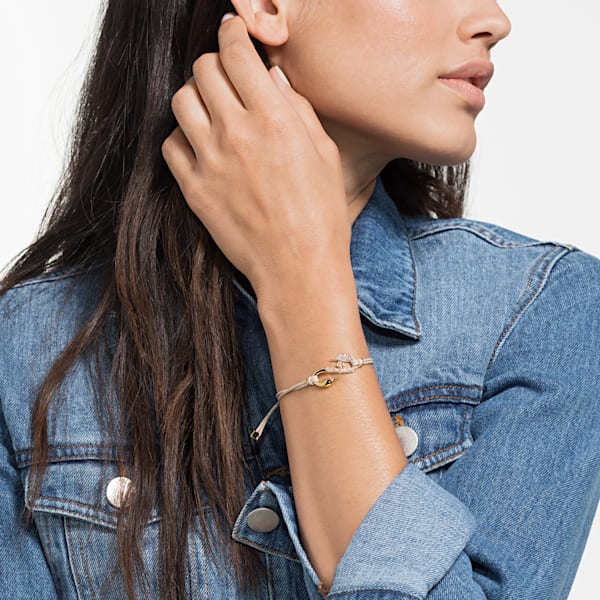 This super easy-to-wear gray brown bracelet features our gold-tone plated S Hook symbol. Inspired by the Swarovski swan, it is elegantly embellished with sparkling crystal pavé, and finished with a fully adjustable closure. Mix and match with other Swaro